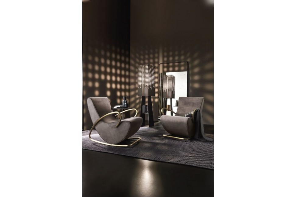 Cantori, azienda Made in Italy specializzata nell'arredamento, propone la poltrona a dondolo Camilla. Nata dalla rivisitazione della classica poltrona a dondolo vintage, questa poltrona presenta un design raffinato ed elegante. La struttura in metallo avvolge seduta e schienale andando a creare sia la base che i braccioli. La poltrona Camilla è proposta con rivestimento in tessuto o pelle, e la base in metallo è proposta in varie finiture.