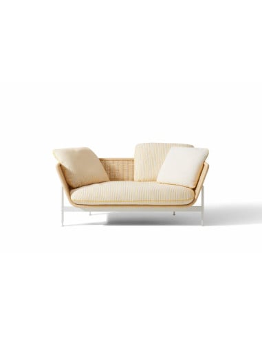 A differenza degli altri divani da esterno, il divano outdoor Esosoft si distingue per il perfetto equilibrio tra contemporaneità e tradizione artigianale. La sua robusta struttura a esoscheletro è avvolta da una scocca in fibra sintetica di PVC con un'anima interna in nylon intrecciato a mano, richiamando la naturalezza dei materiali organici e conferendo autenticità e calore accogliente al divano. I cuscini, realizzati con materiali idrorepellenti, offrono un comfort avvolgente e sono facili da mantenere. La struttura metallica, dotata di viti a vista, facilita il disassemblaggio e promuove il riciclo responsabile al termine del ciclo di vita del prodotto.