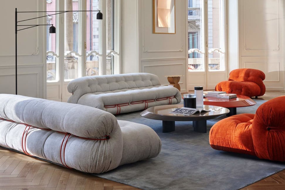 Il divano Soriana di Cassina, disegnato da Afra e Tobia Scarpa, è un’icona del design premiata con il Compasso d’Oro, rieditata con imbottiture sostenibili e una struttura metallica che ne definisce la forma.