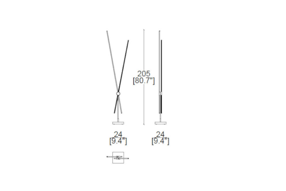 Le bacchette della lampada da terra possono inoltre essere inclinate a destra e a sinistra in maniera indipendente fono a 20°.