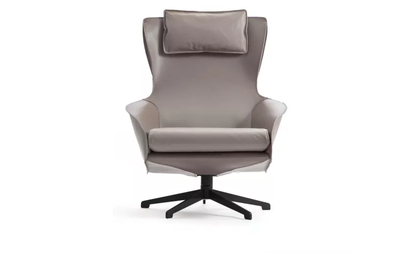 La struttura della poltrona Cab Lounge è composta da un telaio in tubolare d'acciaio verniciato di colore nero, dotato di cinghie elastiche che conferiscono robustezza e durabilità. La tela portante, realizzata in multistrato di betulla, assicura una base solida e stabile. La poltrona è dotata di una base girevole a cinque razze, che presenta un meccanismo di inclinazione per offrire un comfort sorprendente. L'imbottitura della poltrona è realizzata con poliuretano espanso flessibile schiumato a freddo, che offre un supporto ergonomico e un comfort ottimale. L'uso di ovatta in fibra di poliestere resinata accoppiata con vellutino e di piume d'oca contenute in una fodera di tela cotone aggiunge ulteriore morbidezza e comfort. Il rivestimento della poltrona Cab Lounge è disponibile in cuoio o pelle, offrendo una vasta gamma di opzioni di personalizzazione per adattarsi a qualsiasi stile e preferenza estetica.