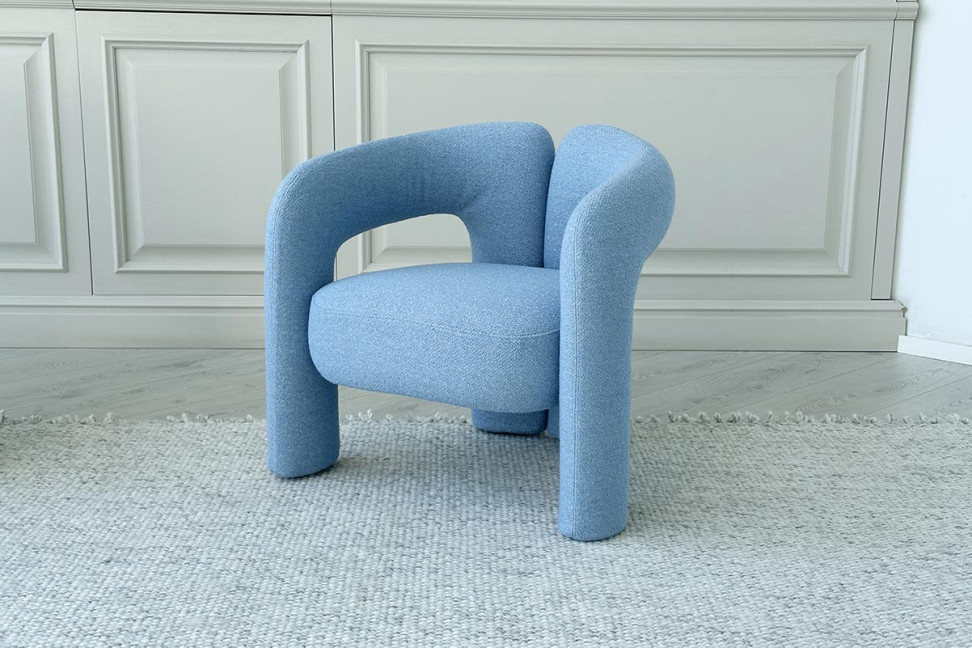 La poltrona Dudet in offerta expo nel nostro showroom è interamente rivestita in un tessuto bouclé in colore azzurro come il cielo, una nuance che le conferisce leggerezza e luminosità. Le cerniere del rivestimento sono in colore grigio chiaro per evitare un effetto di evidente contrasto.