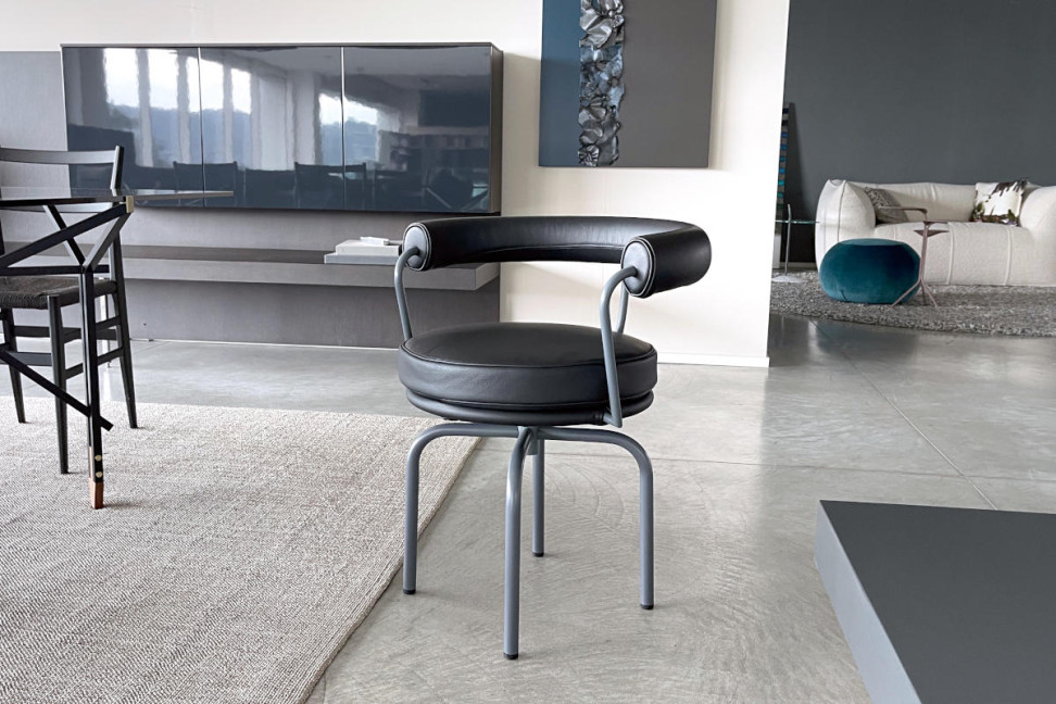 La sedia LC7 di Cassina, creata da Charlotte Perriand nel 1927, è spesso erroneamente attribuita a Le Corbusier. Progettata prima della sua collaborazione con lo studio di Le Corbusier, questa sedia utilizza una struttura in tubo metallico come supporto principale. Il design innovativo, con schienale avvolgente e gambe piegate per stabilità, la rende perfetta per ambienti moderni. Realizzata per le abitazioni contemporanee, è esposta in musei di arte moderna come il MoMA di New York.