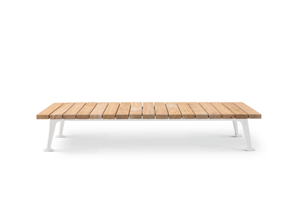 Le gambe del tavolino Fenc-e Nature, in pressofusione di alluminio verniciato, riprendono quelle delle sedute della stessa linea mentre il piano è realizzato in doghe di legno massello teak con finitura sabbiata. Disponibile in due altezze, il tavolino Fenc-e Nature è l'elemento perfetto per completare la zona living all'aperto.