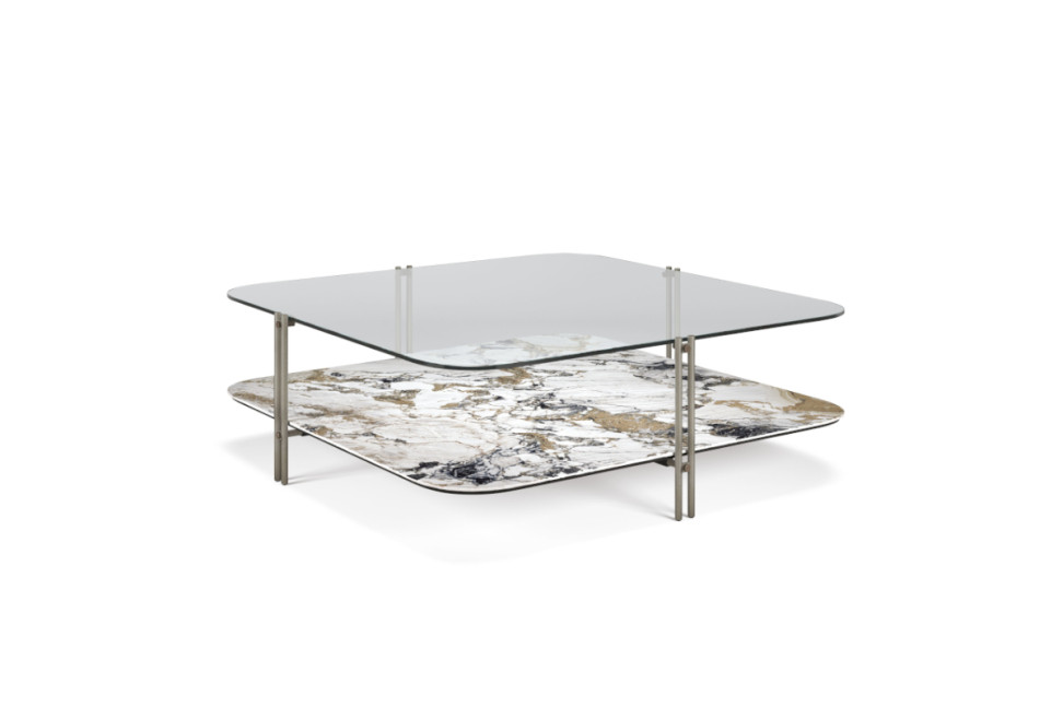 Il tavolino Biplane nasce dalla mente creativa di Paolo Cattelan e si distingue per il suo design moderno e ricercato, perfetto per ambienti importanti e raffinati. Il tavolino Biplane è realizzato nella versione quadrata o rettangolare, il piano è disponibile in cristallo trasparente o fumè con il piano inferiore in ceramica Marmi nei colori Calacatta o Ardesia.