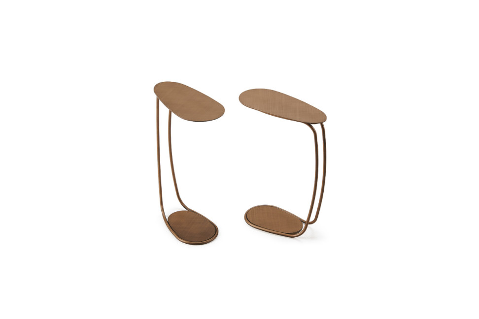 Disponibile in due versioni con altezze diverse, il tavolino Yago è interamente realizzato in acciaio verniciato goffrato titanio o Brushed Bronze.
