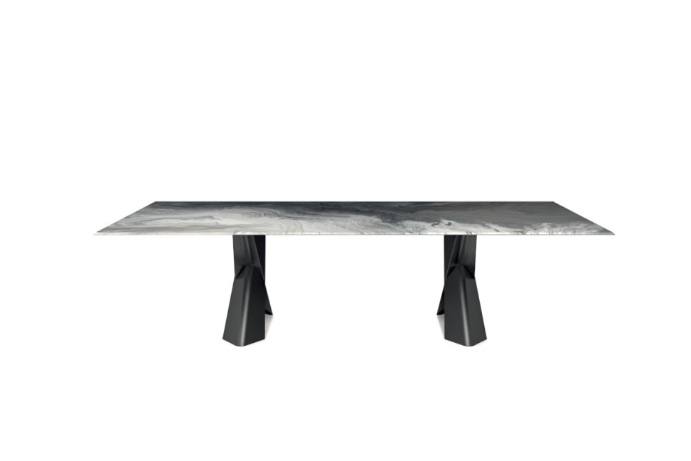 La linea di tavoli contemporanei Mad Max dell'azianda Cattelan Italia, ideati da Paolo Cattelan, conferisce alla sala da pranzo un'eleganza e un'unicità senza pari. L'essenza e l'originalità si fondono armoniosamente nella concezione di questo tavolo di design, che si presenta come un elemento d'arredamento senza tempo.