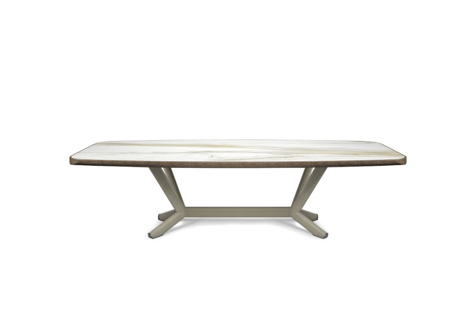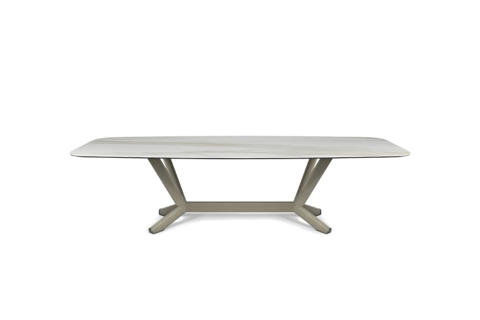 Il tavolo Planer Keramik prodotto da Cattelan Italia, su idea di Paolo Cattelan, si distingue per la base in acciaio verniciato goffrato titanio, grafite o nero o Brushed bronze, caratterizzata da un design semplice e lineare ma estremamente raffinato.