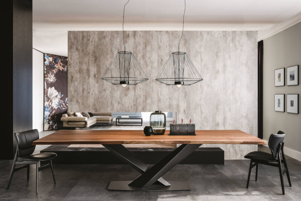 Stratos Wood, prigettato dallo Studio Kronos per Cattelan Italia, è un tavolo che cattura subito l'attenzione grazie al suo aspetto monumentale ed elegante.