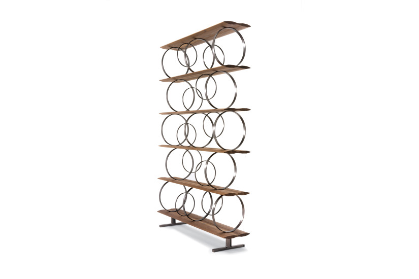 Gli elementi distintivi della libreria modulare Flying Circles sono l'originale estetica e la struttura leggera: gli anelli interni di diverse dimensioni fungono da reggilibri, ma hanno anche una funzione strutturale. Il designer Massimo Castagna ha realizzato un vero e proprio elemento d'arredo dal forte impatto visivo, contraddistinto da un design moderno e divertente. Ceccotti Collezioni produce questa libreria con la struttura in varie tipologie di legno massello noce americano. Gli anelli possono essere realizzati in acciaio nichelato nero oppure dorato.