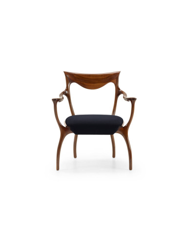 La poltroncina Hypnos è proposta da Ceccotti Collezioni con struttura in legno massello di noce americano, disponibile con finitura naturale, moka, dark e brown; la seduta è in multistrato imbottito e può essere rivestita con i tessuti e le pelli dell'ampia collezione offerta da Ceccotti. Questa poltroncina è larga 74 cm, profonda 60 cm e alta 82 cm, con seduta alta 42 cm.