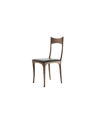 Disegnata da Roberto Lazzeroni per il marchio Made in Italy Ceccotti Collezioni, la sedia Chumbera Segunda presenta una struttura slanciata, in legno massello di noce americano, proposta con finitura naturale, dark, moka, e brown; la seduta invece è imbottita e può essere rivestita nei vari tessuti e pelli delle collezione tessile Ceccotti.