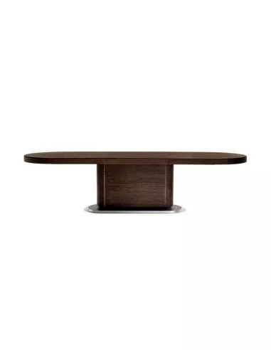 I tavoli I.C.S. presentano un massiccio basamento in acciaio inox ed un top in massello di rovere e multistrato di pioppo impiallacciato. La linea I.C.S. presenta un'impressionante gamma di dimensioni e forme diverse: dai tavoli rotondi a quelli quadrati, da quelli rettangolari finoa quelli ovali. Su richiesta, è disponibile una versione con basamento in ottone brunito. Ogni tavolo di questa collezione è munibile di una scatola di elettrificazione con pannello apribile dotata di presa lan, USB, presa audio e schuko.