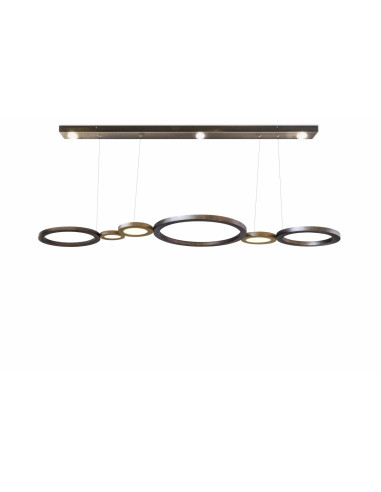 Caratterizzata da un design essenziale ma non banale, la lampada Vegas di Massimo Raggi in collaborazione con l'azienda Contardi, risulta essere un elemento d'arredo particolarmente indicato per grandi ambienti eleganti, ma anche per raffinati spazi commerciali. Modernità ed alto artigianato si fondono per creare un sistema di illuminazione innovativo e all'avanguardia: una luce calda ed avvolgente conferirà un tocco di stile al vostro ambiente. La lampada a sospensione Vegas si presenta con una struttura in legno con finitura in bronzo e bronzo chiaro ed un disco diffusore in alicrite effetto alabastro.