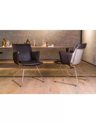 Disponibile in vari modelli, con o senza braccioli, la sedia DS-515 è realizzabile sia in tessuto che in pelle, mentre la base è in acciaio verniciato nero opaco per la versione da interno, e acciaio inossidabile verniciato bianco lucido per la versione da semi-esterno.