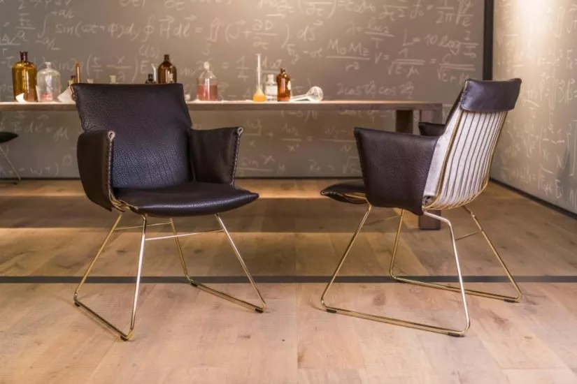 La sedia DS-515 è una delle novità introdotte nel 2018 da De Sede, prestigiosa azienda svizzera leader nel settore della lavorazione della pelle.Questo complemento d'arredo versatile e moderno nasce da un progetto realizzato dallo studio di design Greutmann Bolzern, fondato dai due designer svizzeri Carmen Greutmann-Bolzern e Urs Greutmann, i quali hanno creato per De Sede un oggetto che coniuga modernità e artigianalità, minimalismo formale e ricercatezza sartoriale. DS-515 è infatti caratterizzata da una sottile base in metallo che slancia la seduta rivestita in pelle e rifinita da cuciture incrociate tono su tono, elementi che rendono questa sedia adatta sia ad ambienti interni che semi-esterni.