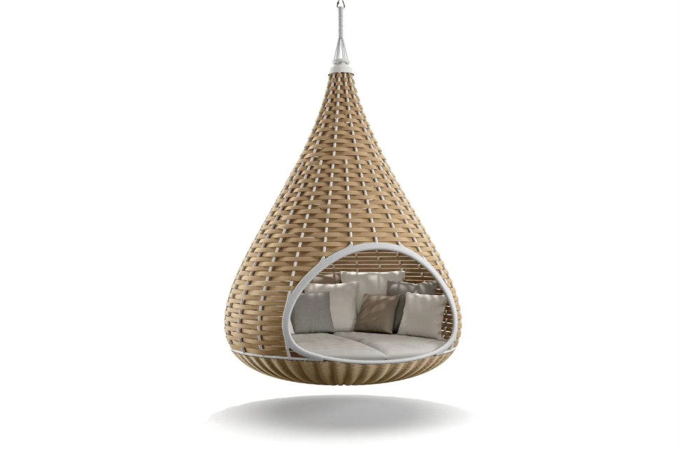 Grazie al suo design armonioso, accogliente e protettivo, il divano Nestrest di Dedon disegnato da Fred Frety e Daniel Pouzet, trasforma un divano tipico da giardino in una mini-architettura, in un luogo riparato, avvolgente e sospeso, ideale per il relax, la meditazione e la conversazione all'aperto. Per la realizzazione di Nestrest è stata utilizzata una fibra Dedon particolarmente resistente (4 centimetri invece dei soliti 2 cm), che permette di ottenere un tessuto di sostegno con proprietà eccezionali. Nestrest protegge e nasconde dagli sguardi indesiderati dall'esterno, mentre dall'interno si può guardare quasi liberamente al di fuori. Per un vero senso di sicurezza.