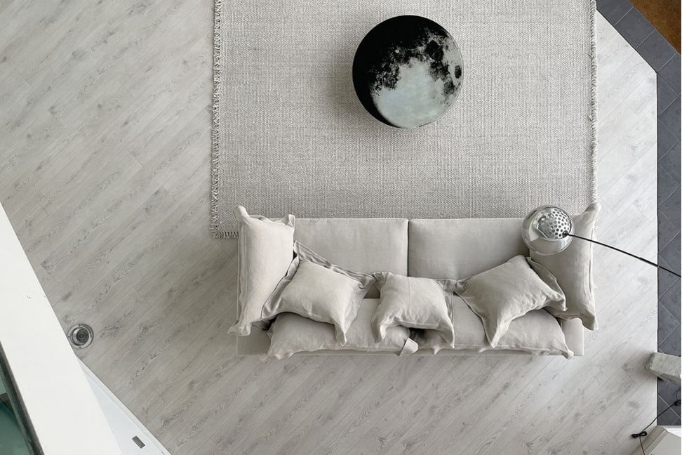 Un'armoniosa fusione del savoir-faire a di Diesel e Moroso, il divano Nebula Nine avvolge in un comfort simile alle nuvole con i suoi lussuosi cuscini rivestiti in lino, offrendo un'oasi di relax.