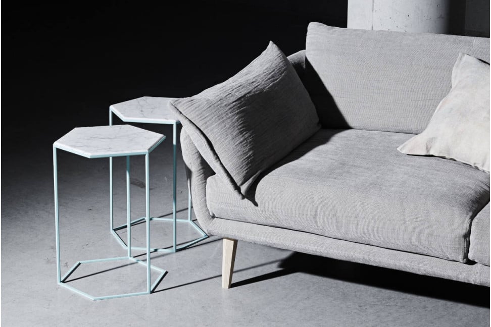 Presentato da Diesel with Moroso, questo tavolino gioca sul contrasto fa il solido piano in marmo dalla forma esagonale e la leggera struttura in metallo. Il tavolino Haxxed è classico e moderno allo stesso tempo, può essere come elemento singolo accanto ad una seduta oppure componendo un disegno originale. Il tavolino è disponibile in due altezze e in tre combinazioni cromatiche: rame vintage, rame lucido e nero opaco verniciati a polveri, corredati da piani in marmo nero o bianco.