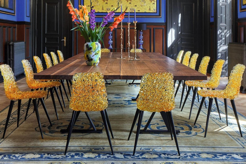 La sedia Gina, creata per Edra da Jacopo Foggini, è un'opera d'arte che unisce maestria artigianale e design innovativo: con il suo ricamo prezioso e le forme eleganti, rappresenta un'icona di stile e bellezza contemporanea.