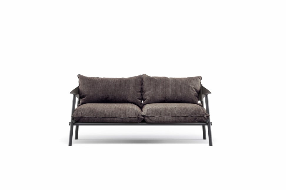 Terramare è una delle collezioni realizzate dall'azienda Emu, famoso brand italiano specializzato nella produzione di arredi per l'outdoor, e progettata dallo studio Chiaramonte-Marin. L'elemento distintivo del divano per esterno Terramare è lo snodo in pressofusione di alluminio, che evoca il sistema di giunzione dei tronchi in giunco. I braccioli e lo schienale sono realizzati in eco-cuoio, con finitura aspetto vissuto, mentre i cuscini sono rivestiti con un tessuto in pvc e poliestere spalmato disponibile in tanti colori brillanti. Completano la collezione tre tavolini dalle forme morbide e un tavolo rettangolare.
