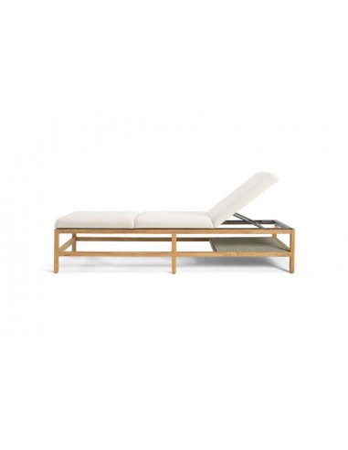 Realizzato con materiali di alta qualità, il lettino Grand Life di Ethimo siglato Christophe Pillet è costruito in teak, con anima di metallo per garantirne la solidità e robustezza, e arricchito con dettagli in corda acrilica intrecciata che imitano il rattan naturale, offrendo un aspetto caldo e invitante. La linea pulita e moderna del Grand Life si distingue per la sua struttura solida e confortevole, pensata per garantire il massimo relax. I cuscini, imbottiti e rivestiti con tessuti idrorepellenti e resistenti ai raggi UV, aggiungono un ulteriore livello di comfort, rendendo il lettino ideale per il bordo piscina, un terrazzo soleggiato o un elegante giardino.