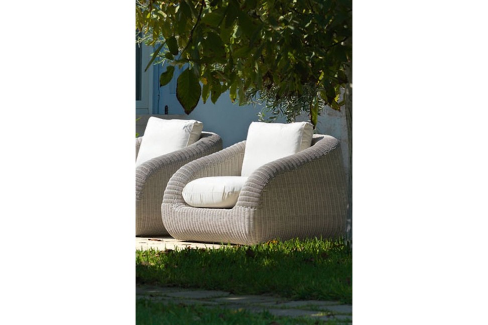 Comoda e avvolgente, la poltrona lounge per esterno Phorma viene proposta da Ethimo nella sua collezione di poltrone da giardino. Dotata di una resistente struttura in intreccio Etwick, disponibile in bianco e in color corda, questa poltrona presenta due confortevoli cuscini, uno di seduta e uno di schienale, proposti in color avorio e grigio tortora. I materiali che compongono la poltrona lounge Phorma sono appositamente studiati per l'esterno, ma per un'ulteriore riparo dalle intemperie, è disponibile anche una cover protettiva.