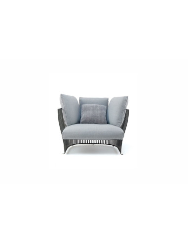 Il design di Nichetto per la Venexia di Ethimosi distingue per la sua attenzione ai dettagli e per l'uso sapiente di materiali di alta qualità. Il tessuto per l'esterno è resistente agli agenti atmosferici, garantendo durabilità e facilità di manutenzione, ideale per l'uso all'aperto senza compromettere lo stile. La seduta, accogliente e ergonomica, invita al relax, mentre le forme fluenti conferiscono un tocco di raffinata semplicità. Questa poltrona è pensata per integrarsi armoniosamente in spazi sia domestici che pubblici, aggiungendo un tocco di classe e comfort ovunque sia collocata. Grazie alla sua versatilità estetica e funzionale, la Venexia si presenta non solo come un elemento di arredo, ma come una vera e propria dichiarazione di stile contemporaneo e funzionalità sofisticata.