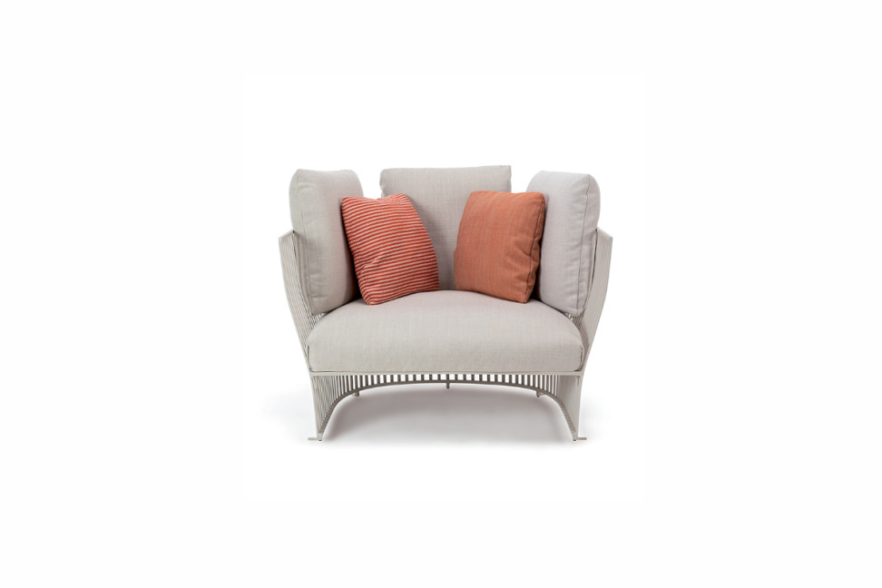 La poltrona Venexia di Ethimo, ideata dal designer Luca Nichetto, incarna un connubio armonioso tra tradizione artigianale e innovazione moderna. E' caratterizzata da linee sinuose e una struttura leggera in alluminio.