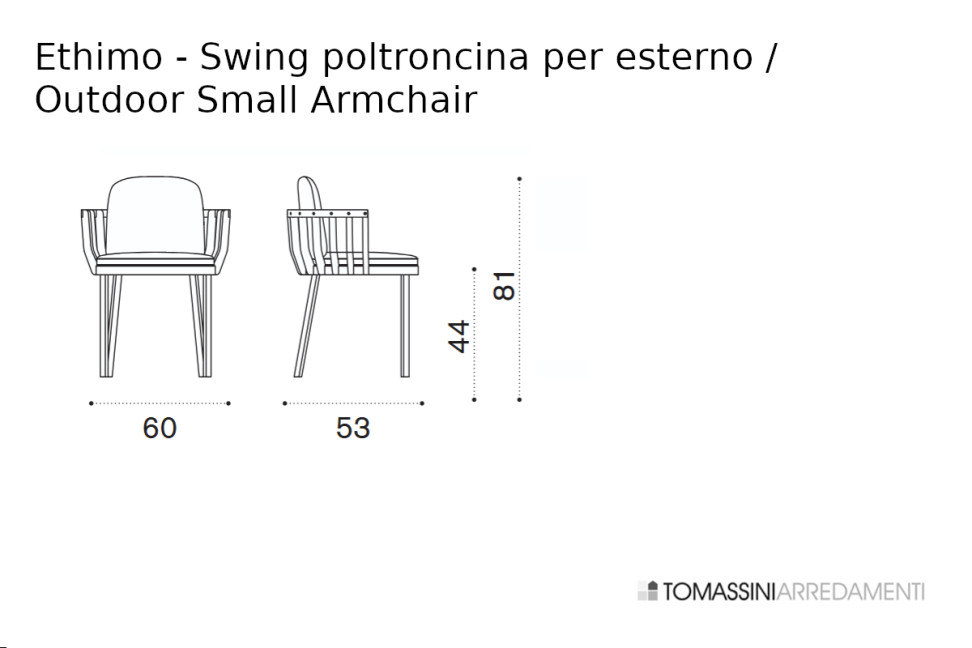La poltroncina per esterno Swing è disponibile nelle seguenti dimensioni: cm. 60x53x81h.