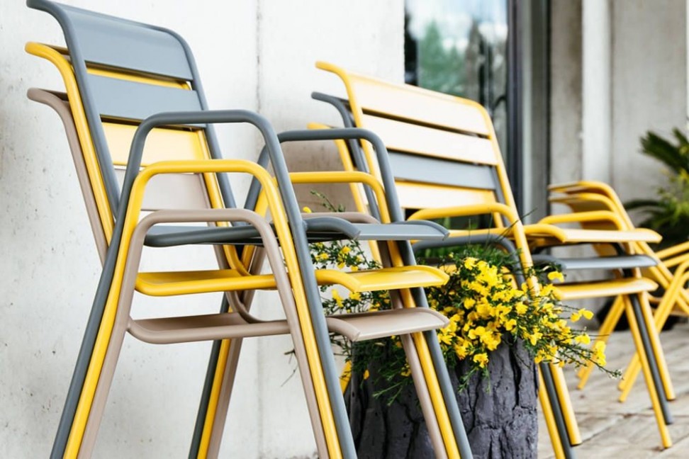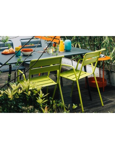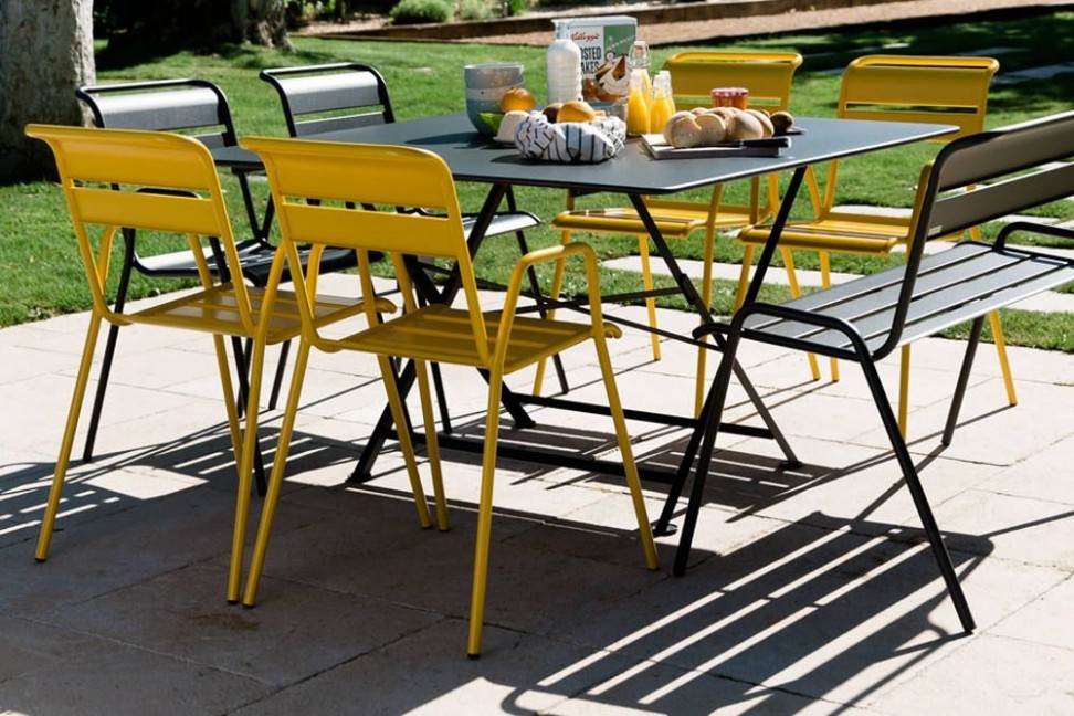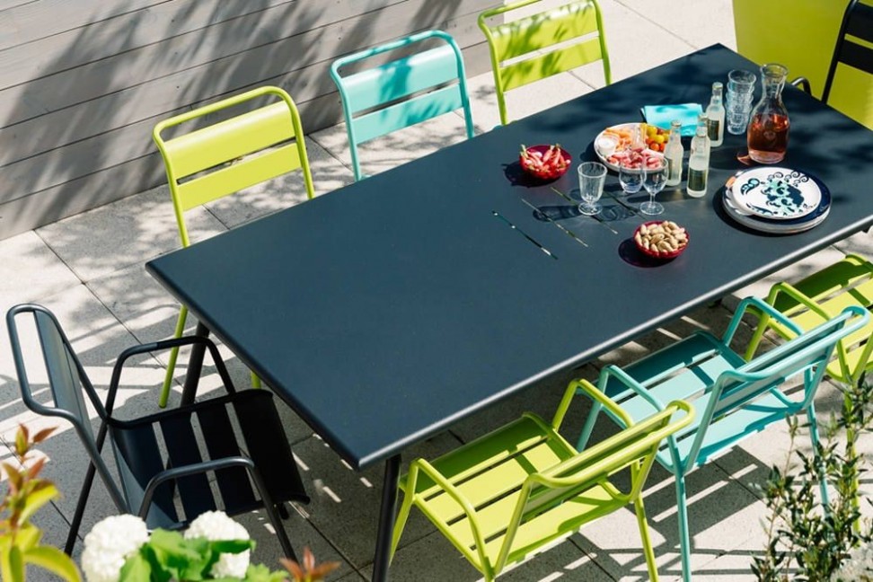 Fermob realizza la struttura in acciaio laccato e offre la possibilità di scegliere fra tanti colori brillanti.
