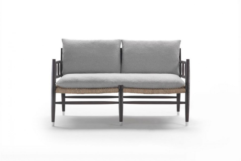Il divanetto Lee si completa con soffici cuscini che ne arricchiscono le linee e il confort.