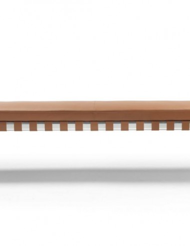 La panca Gregory è realizzata in tre misure e caratterizzata da un’originale base in metallo accompagnata al cuoio, materiale caldo e raffinato con il quale sono confezionate le parti a vista delle cinghie sulle quali appoggiano i cuscini di seduta. I piedini in alluminio sono disponibili in diverse finiture mentre il cuoio è proposto nei colori tabacco, testa di moro, grigio e nero.