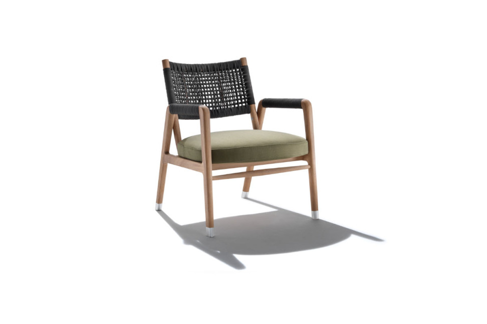 Progettata dal team Flexform, la poltrona per esterno Ortigia è una testimonianza di artigianato e design raffinato, pensata per conferire stile e comfort agli spazi all'aperto. La struttura della poltrona per esterno Ortigia è realizzata interamente in legno massello, che subisce lavorazioni artigianali richiamanti la maestria ebanista del passato. Questo approccio conferisce alle sedute un carattere autentico e una solidità che resiste alle sfide dell'ambiente esterno. Le finiture eleganti conferiscono una nota di prestigio e si armonizzano perfettamente con la natura circostante. Per assicurare stabilità e protezione su diverse superfici, le poltrone per esterno Ortigia sono dotate di puntali in lega metallica pressofusa fresata e gommini in nylon. Questi elementi contribuiscono a preservare la struttura del legno e offrono un appoggio sicuro sulla maggior parte delle superfici all'aperto. La seduta è accuratamente imbottita, garantendo il massimo comfort anche durante le lunghe serate all'aperto. Lo schienale è impreziosito da un intreccio sofisticato, completamente realizzato a mano. Questo dettaglio distintivo è proposto in due varianti: corda di polipropilene o gomma poliuretanica. Entrambe le opzioni sono disponibili in una palette cromatica raffinata, che consente di personalizzare le sedute per adattarle ai diversi stili e ambienti.