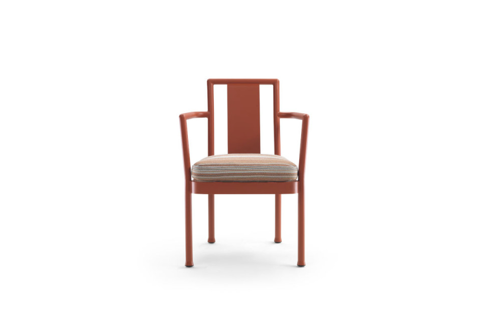 Connotata da struttura in alluminio verniciato a polvere epossidica, con finitura liscia o goffrata, questa poltroncina si adatta a qualsiasi ambiente outdoor, anche scoperto. Presenta due comodi braccioli che si fondono con lo schienale formato da una lamina di acciaio posta in verticale per sostenere il corpo, oltre a un comodissimo cuscino in fibra di poliestere per la seduta. Per scegliere il look della poltroncina Camargue è possibile creare infinite combinazioni tra il colore della struttura e quello del rivestimento sfoderabile idrorepellente.