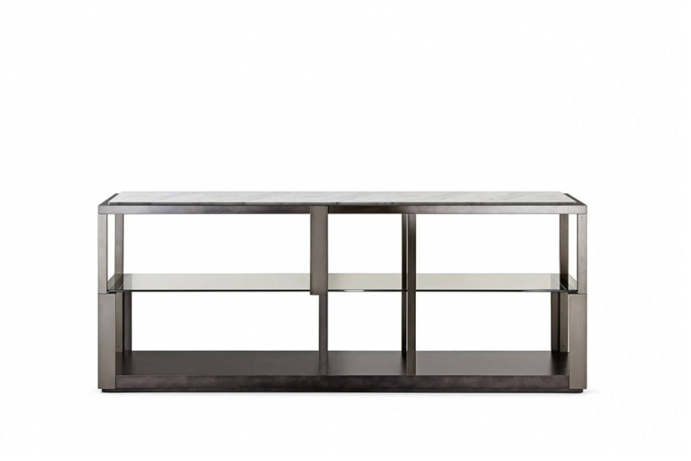 Nata dalla penna del designer Castagna, la libreria Tortona è composta da una struttura in metallo verniciato color bronzo patinato. Gallotti & Radice realizza i piani della libreria Tortona in cristallo da 8 mm, nelle versioni stopsol bronzo o extralight temperato.