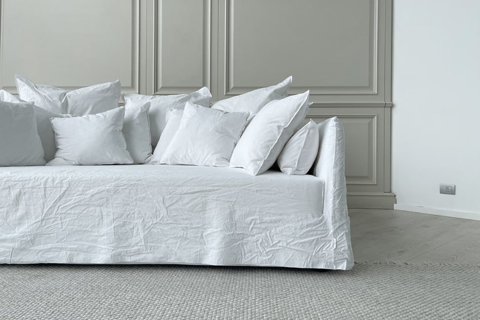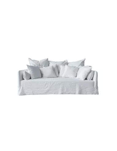 Il divano Ghost, disegnato da Paola Navone per Gervasoni, è realizzato con una struttura in multistrati e massello con imbottitura in poliuretano espanso. Il rivestimento è completamente sfoderabile. In questo modello Ghost sono inoltre inclusi i cuscini schienale, i cuscini bracciolo e ben otto cuscini: n.4 cuscini da 60x60cm e n.4 cuscini 50x50cm.