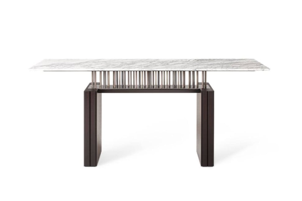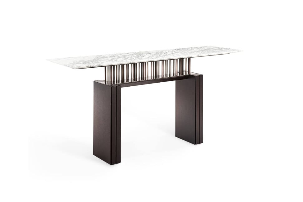 Sempre parte della G-Code collection firmata da Dante O. Benini e Luca Gonzo per Giorgetti, è la consolle, elemento dal forte impatto scenografico.