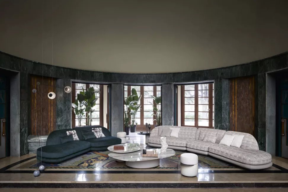 Un design fluido e originale è quello che caratterizza il divano Vesper di Giorgetti.