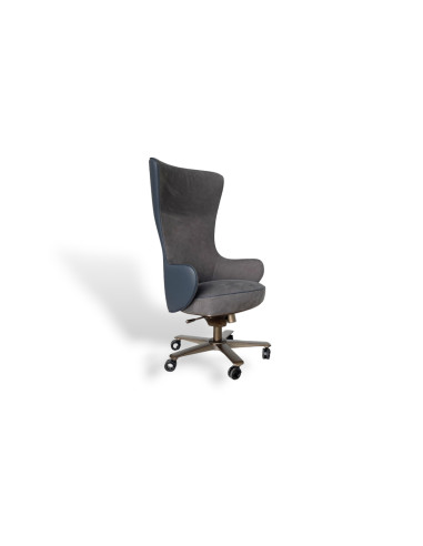 La Poltrona Direzionale Genius in offerta expo nel nostro showroom è la versione rivestita nella scocca in pelle blu, e nell'interno in pelle color grigio scuro.