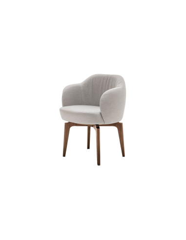 L'equilibrio con cui la seduta e la base in noce canaletto si uniscono, rendono Elisa di Giorgetti un elemento adatto ad essere inserito in ogni tipo di living. Oltre alla versione monocolore, in tessuto o in pelle, è possibile abbinare un rivestimento esterno in pelle con un rivestimento interno in tessuto o in pelle. La base è girevole, mentre lo schienale è disponibile in due diverse altezze.