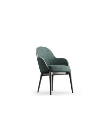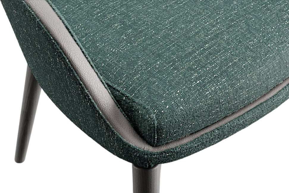 Le gambe della poltroncina Lunaria sono realizzate in frassino proposto nelle finiture naturale, grigio antracite, biscotto e cenere. Il rivestimento, non sfoderabile, è disponibile in due versioni: monocolore, in tessuto o pelle, o bicolore, con la scocca interna in tessuto o pelle e quella esterna in pelle. Entrambi i modelli sono impreziositi da un'elegante fascia in pelle.