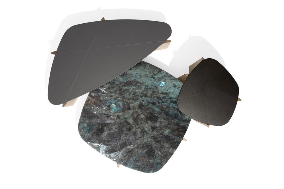 Questi tavolini presentano un raffinato sistema di incastri e sovrapposizioni, possibili grazie alle diverse forme e dimensioni in cui vengono declinati. La semplicità visiva è impreziosita dal sapiente uso di materiali pregiati curati nei minimi dettagli. I tavolini presentano un base in MDF impiallacciato noce canaletto – naturale, grigio e scuro – su cui si incastra perfettamente il piano con diverse forme e angoli smussati. Il top è disponibile pelle, frassino o marmo a scelta tra una vasta gamma di opzioni. Il tavolino Griffedi Giorgetti è perfetto per dare un tocco raffinato e giocoso al proprio salotto.