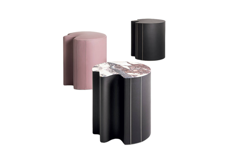 Scopri la nuova collezione Woody & Mia per poter donare alla tua casa uno stile unico e raffinato: tavolino basso il cui piano in marmo o noce canaletto, è sagomato su un solo angolo per permettere l'unione con il tavolino alto; tavolino alto o pouf in pelle, con due inserti in metallo verniciato finitura pewter sul lato. Il top è disponibile in noce Canaletto.