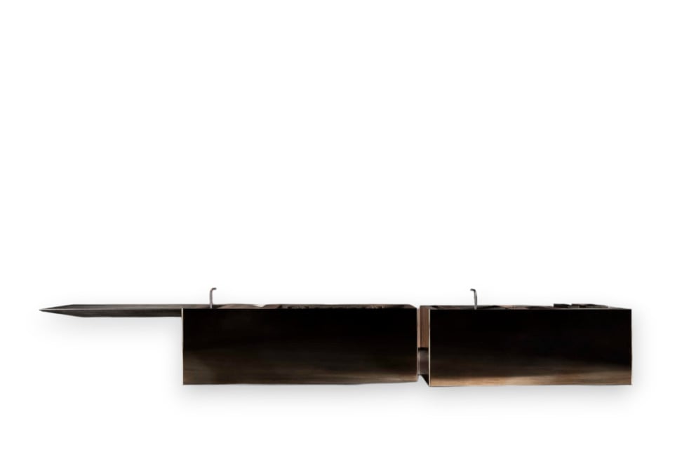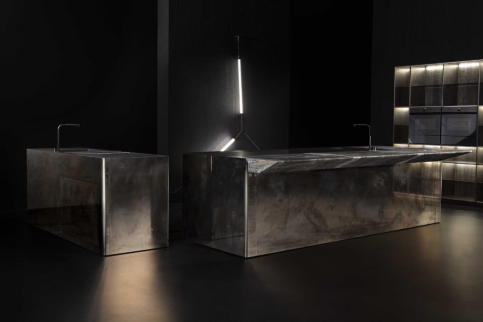Oxygen è un'isola da cucina progettata da Massimo Castagna in collaborazione con Henge. Il suo design elegante e d’impatto si caratterizza per blocchi monolitici che uniscono pietra e una struttura rivestita in metallo pregiato.