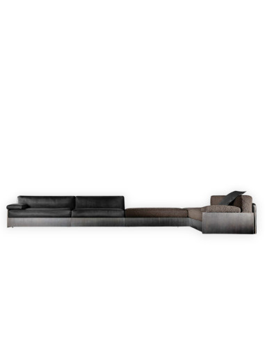 Presentato fra le ultime novità del brand Henge disegnato da Isabella Genovese, il divano Gattopardo presenta una struttura in acciaio brunito nero che sale fino allo schienale con il profilo arrotondato. La seduta, invece, è composta da cuscini imbottiti in poliuretano dalle forme rigide che offrono il massimo della comodità. Il rivestimento sfoderabile è disponibile sia in tessuto che in pelle. La varietà di moduli disponibili, con o senza vassoio laterale, permette di creare composizioni sempre nuove per soddisfare ogni esigenza.
