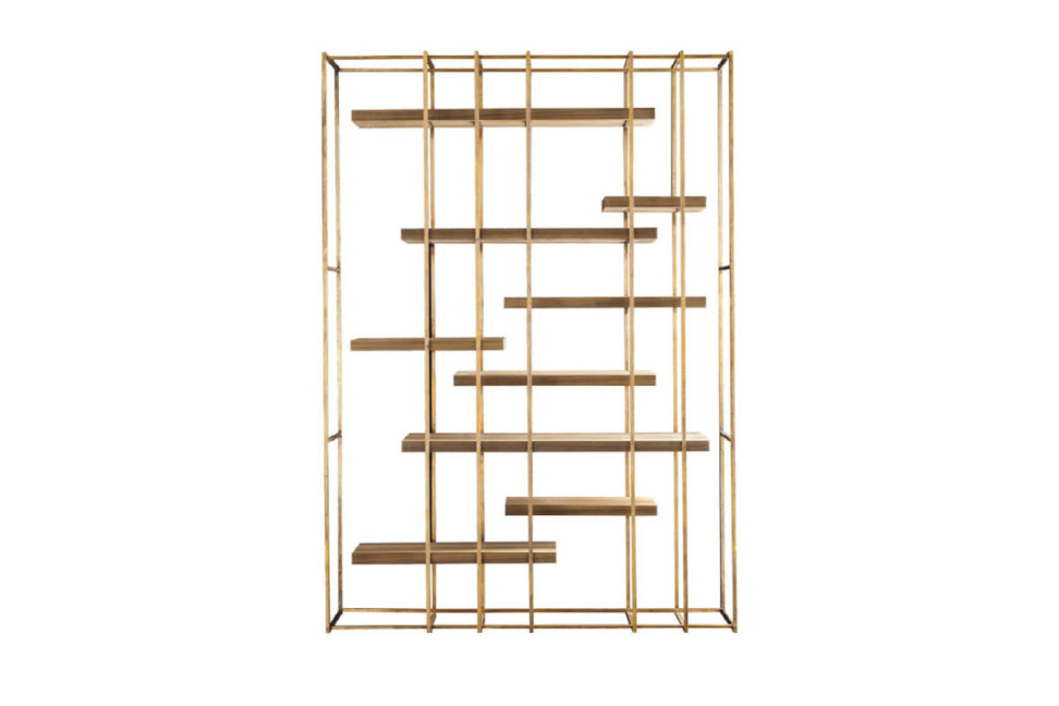 Il prezzo indicato si riferisce alla libreria Cage-B con dimensioni 180x35x260h, struttura in ottone brunito (burnished brass) e ripiani in legno in oak thermowood, eucalyptus thermowood, oppure black eucalyptus thermowood.