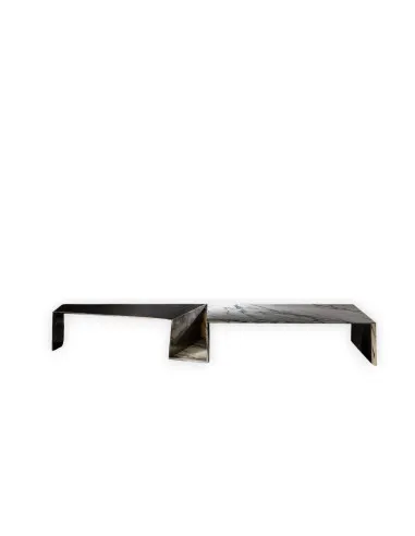 Per il tavolino Origami introdotto da Henge, il designer Ugo Cacciatori si è ispirato alle famose opere di carta giapponese da cui prende il nome. Il tavolino infatti presenta una piega come quella degli origami al centro della struttura e si declina in tre misure. Le due più grandi sono costituite da due moduli – uno in metallo fuso e uno in pietra – mentre quello più piccolo è realizzato interamente in metallo. Il tavolino Origami è in grado di trasformare qualsiasi ambiente rendendolo estremamente raffinato.