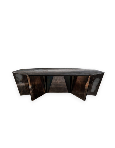 Dal look originale, questo tavolo del designer Ugo Cacciatori in collaborazione con Henge, è caratterizzato da gambe in vetro fuso di colore grigio o verde sostenute da una struttura in acciaio brunito nero. Il piano può essere realizzato in pietra, titanio brunito o platino brunito ed è disponibile a forma di diamante o rettangolare. Grazie alla sua presenza scenica, il tavolo Gotham sarà il protagonista indiscusso dell'ambiente.