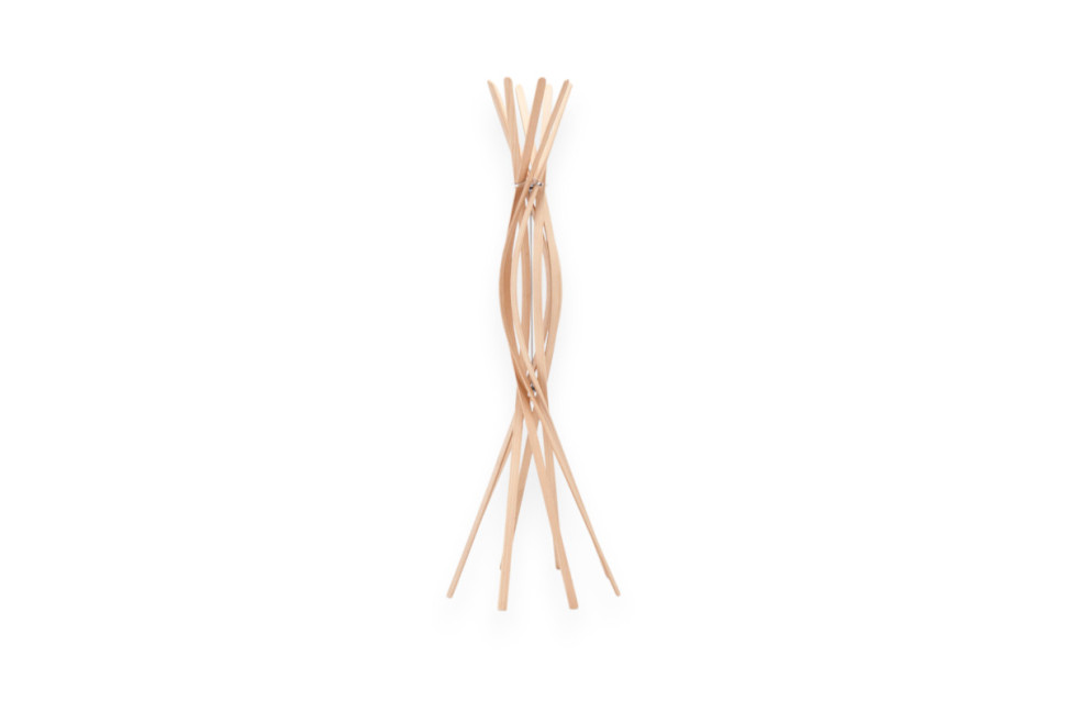 Il progetto, firmato dallo studio Burtscher & Bertolini, è realizzato da Horm, azienda italiana che da quasi 30 anni realizza oggetti di design unici unendo la fantasia dei designer internazionali all'esperienza degli artigiani del luogo. L'appendiabiti Twist è formato da otto listelli di faggio che si avvolgono e si piegano come se stessero ballando a tempo di twist. I ganci sono posizionati nella parte centrale, in questo modo gli abiti appesi coprono solo una parte dell'appendiabiti, donando risalto allo splendido fiore di legno in alto.
